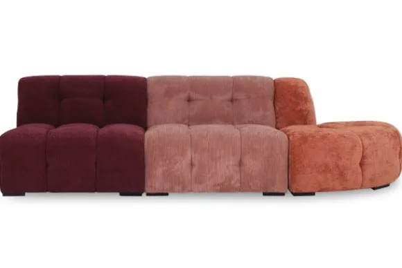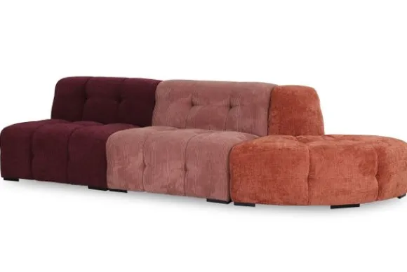 Je kunt kiezen uit verschillende materialen, waaronder rundleder en stoffen als velvet en boucle. Daarnaast is de bank verkrijgbaar in een breed scala aan kleuren. Je kan bij deze bank kiezen om alle elementen in dezelfde kleur te laten stofferen, of juist in verschillende kleuren.