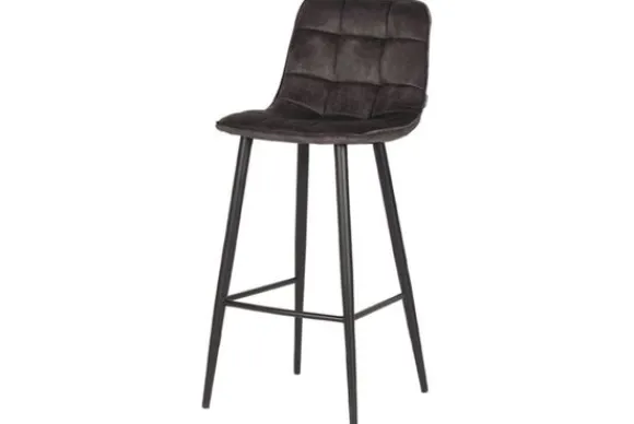 Barkruk Jelt Antraciet UK-30.441 van LABEL51 uitgevoerd in Adore Anthracite 68 Velours, waar comfort en verfijning samen komen. De prachtige blokstiksels in combinatie met het 3D effect door de extra vulling vormen een lust voor het oog! De mooie ‘curve’ van de zitting naar de rugleuning geeft deze stoel ontzettend veel comfort. De rugleuning en zitting hebben een 9-blok stiksel waarbij de stof licht is gecapitonneerd en het 3D effect door de grote hoeveelheid foam extra wordt geaccentueerd. Deze extra foam zorgt tevens voor extra comfort. De zwarte, naar buiten staande poten zorgen ervoor dat de barkruk lekker stabiel op de grond staat en geeft daarnaast de leuke speelse touch.