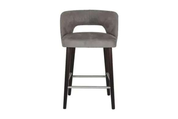 Deze barkruk wordt standaard uitgevoerd met een houten poot in de kleur koloniaal.