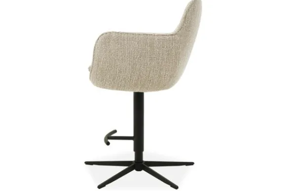 Barkruk Jet van het merk Dining & Chill is verkrijgbaar in alle kleuren en verschillende materiaalsoorten als stof, rundleder en kunstleder. De barstoel heeft een moderne uitstraling dankzij de zwart metalen poot. Je kunt deze barkruk verstellen in hoogte door het luxe en degelijke verstelbare metalen frame. De afgeronde armleuningen vloeien naadloos over in de rugleuning.