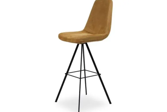 Barstoel Nada wordt standaard uitgevoerd met vier metalen poten die taps naar buiten uitlopen, met een voetensteun.
