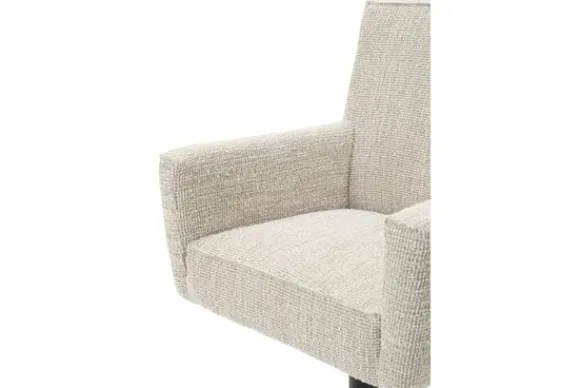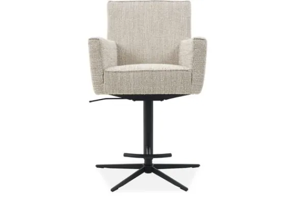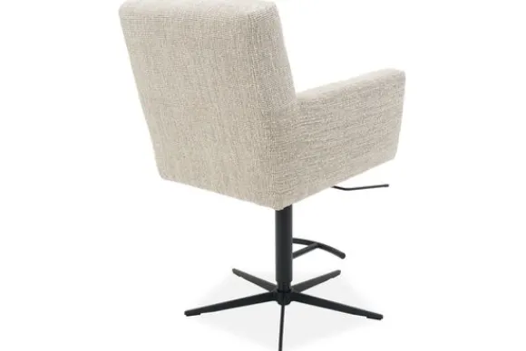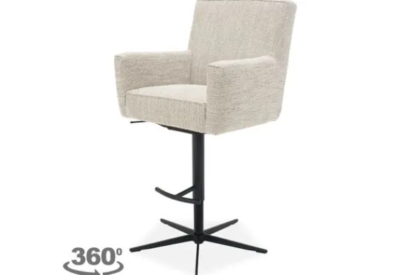 Deze barkruk wordt standaard geleverd met een geknepen naad, een gasveer systeem en een vierkant, zwarte spinpoot als voet.