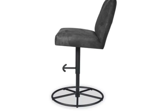 Barkruk Nikki van het merk Dining & Chill is verkrijgbaar in alle kleuren en verschillende materiaal soorten zoals stof, rundleder en kunstleder. De barstoel heeft een moderne, maar ook industriële uitstraling dankzij de zwart metalen poot. Je kunt deze barkruk verstellen in hoogte door het luxe en degelijke verstelbare metalen frame.