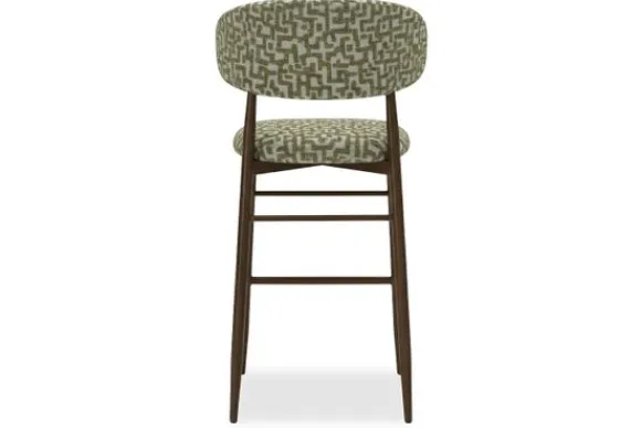 De barkruk is leverbaar in verschillende stoffen en afwerkingen, waaronder zacht velvet en microleder.