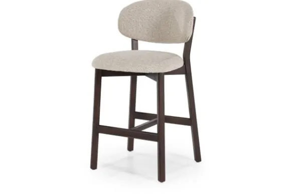 Barkruk Mikky 96259 van het merk Eleonora, is uitgevoerd in de stof Taupe Moon met pootkleur bruin.
