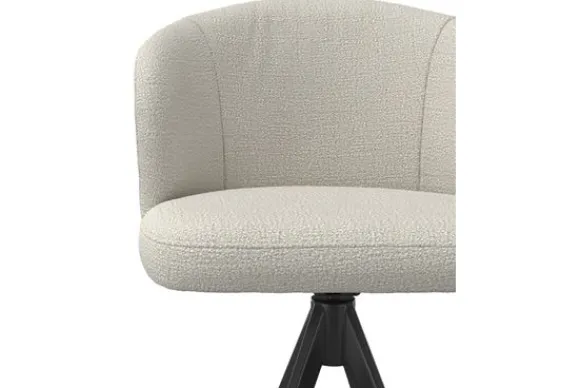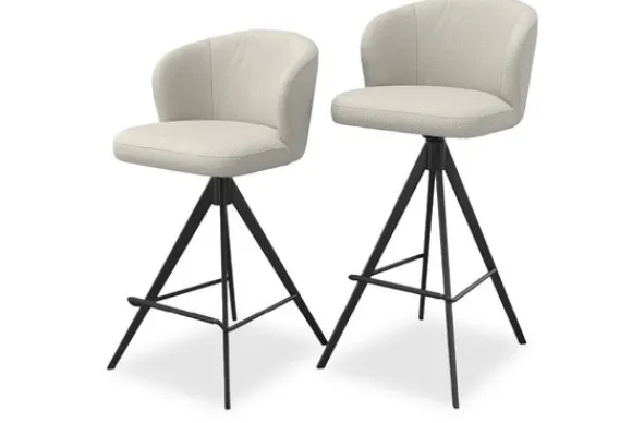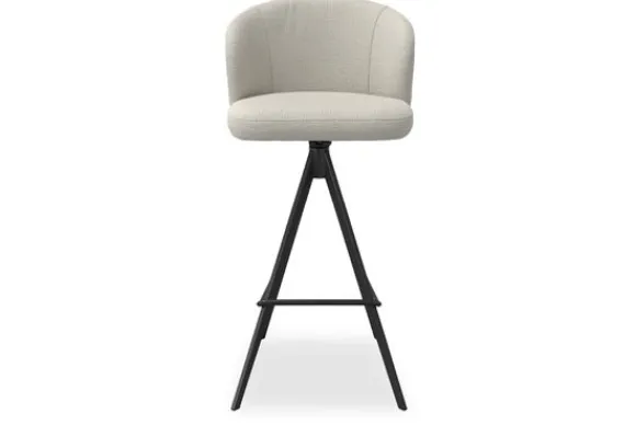 Het elegante onderstel van zwart metaal geeft de kruk een moderne en verfijnde uitstraling, terwijl de zachte bekleding een warme noot toevoegt. Deze combinatie maakt de barkruk geschikt voor woonstijlen als Japandi, modern, Scandinavisch en industrieel.