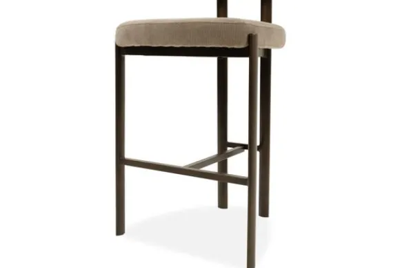 Barkruk Rivano van het merk Kaizen Design combineert modern comfort met een stijlvolle uitstraling. De zitting is uitgevoerd in de zachte kleur Wave Beige en rust op een stevige metalen poot in Anodic Brown.