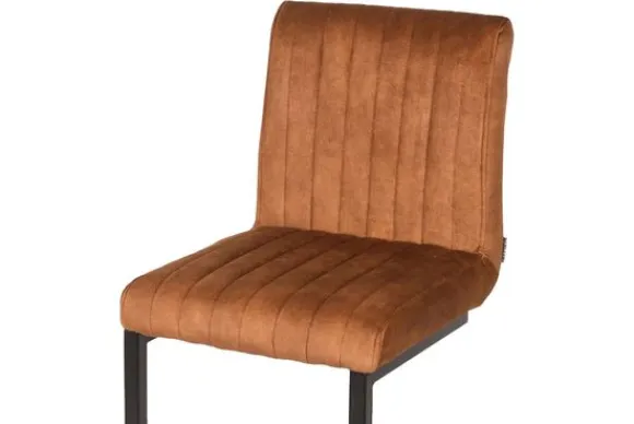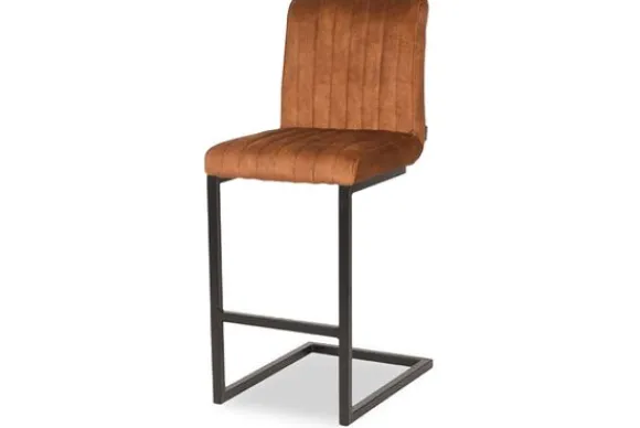 Barkruk Milo, uitgevoerd in een luxe oker kleurige velours heeft een vierkant gevormde zitting voorzien van een luxe stiksel. Het stiksel bestaat uit 8 verticale banen. Het u-vormige metalen frame in de kleur zwart geeft de stoel naast zijn fraaie en elegante uitstraling ook nog eens een bijzonder comfort door de lichte vering in de sledepoot. De poot is voorzien van een extra horizontale pijp waar je je voeten op kunt laten rusten.
