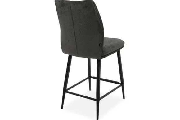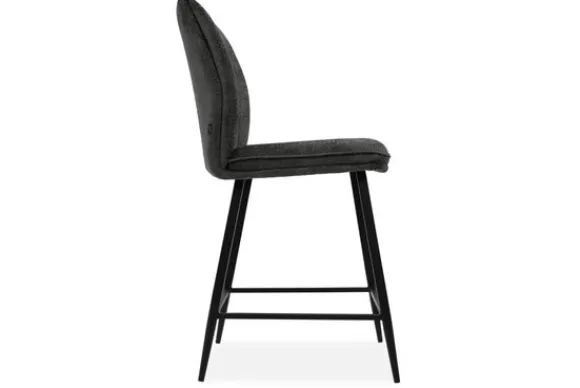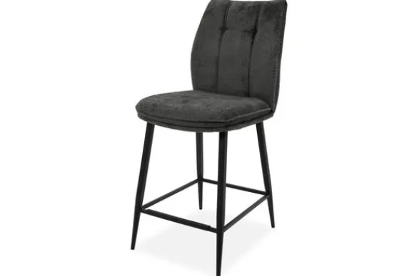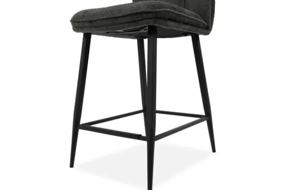 Barkruk Junon van het merk Olijk is bekleed met de zachte stof Movie Anthracit 67. De donkere tint brengt warmte en rust aan je keuken of bar.