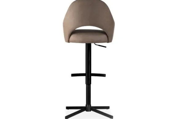 Barkruk Arzano van het merk Opulenza is verkrijgbaar in alle kleuren en materiaalsoorten als rundleder, stof en velvet. Deze barkruk straalt een hedendaagse elegantie uit dankzij zijn ronde lijnen, subtiele opening in de rugleuning en solide metalen onderstel. Het silhouet is zacht en uitnodigend, maar het strakke design van het onderstel voegt een modern industrieel accent toe.