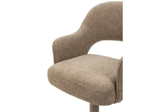 Barkruk Lardy van het merk Opulenza is een stijlvolle en moderne barkruk met ronde vormen, een gladde rugleuning en een metalen sterpoot met voetensteun. De kruk is 360 graden draaibaar, waardoor je moeiteloos beweegt aan keukeneiland of bartafel.