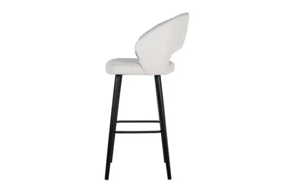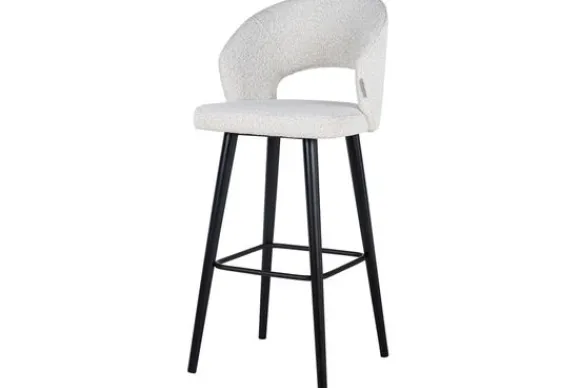 Barkruk Savoy 211073 White Bouclé van het merk Richmond Interiors is gestoffeerd met Copenhagen 900 Bouclé White. Bouclé is een zachte en luchtige geweven stof. De geweven stukjes vormen lusjes, waardoor de stof een fijne en warme uitstraling heeft. De rugleuning en armleuningen lopen in een ronde vorm af voor optimaal zitcomfort. De stoelpoten zijn gemaakt van zwart gelakt hout en beschikt over een voetensteun. Deze barkruk is ook verkrijgbaar in een lagere variant .