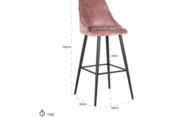 Barkruk Brooke 211634 van het merk Richmond Interiors is een set van twee. De barkruk is gestoffeerd met Bergen 705 Rose Chenille. Chenille is makkelijk te reinigen. Verder heeft deze stof een mooie glans en door de vezels ziet de stof er bij elke lichtinval anders uit. Tevens is de stof zeer comfortabel en zacht, wat zorgt voor een chique en warme uitstraling. De barkruk heeft een zwart gepoedercoat stalen onderstel en is voorzien van een voetensteuntje. Maak je keuken of bar compleet met deze stijlvolle en comfortabele barkruk.