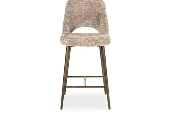 Barkruk Delphine van het merk Richmond Interiors brengt een luxe uitstraling in huis. De kruk is bekleed met de zachte fire retardant stof Be Lovely 01 Nature.