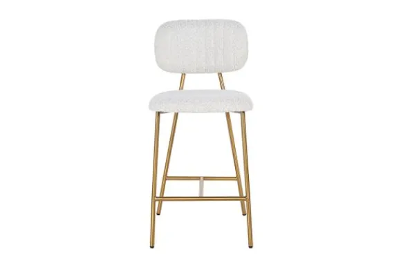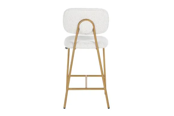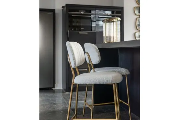 Barstoel Xenia 210692 White Bouclé van het merk Richmond Interiors heeft een luxueuze uitstraling. De barstoel is gestoffeerd met Copenhage 900 Bouclé White en heeft een brass (staal in mat goud) onderstel. De stoel heeft een handig voetensteuntje. Deze barstoel is ook verkrijgbaar in een andere hoogte. Maak je keuken of bar compleet met deze stijlvolle barstoel. Deze barstoel is ook verkrijgbaar in een hogere afmeting .