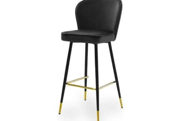 Deze barkurk wordt standaard uitgevoerd met metalen poten in de kleur zwart inclusief gouden details.