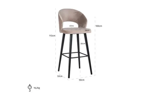 Barkruk Savoy 211070 Khaki Velvet van het merk Richmond Interiors is gestoffeerd met Quartz khaki 903. Velvet is makkelijk te reinigen, slijtvast en goed bestendig tegen bijvoorbeeld nagels van huisdieren. Verder heeft deze stof een mooie vleug, wat zorgt voor een chique en hippe uitstraling. De rugleuning en armleuningen lopen in een ronde vorm af voor optimaal zitcomfort. De stoelpoten zijn gemaakt van zwart gelakt hout en beschikt over een voetensteun. Deze barkruk is ook verkrijgbaar in een lagere variant .