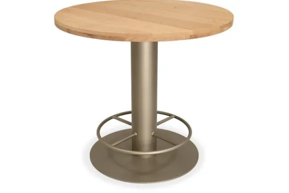 Bartafel Olea van het merk De Houtmaatschappij is verkrijgbaar in verschillende afmetingen en houtkleuren. Deze bartafel heeft een rond tafelblad met een rechte rand en is gemaakt van massief eikenhout. Eikenhout leeft en geeft hierdoor karakter aan jouw meubelstuk. Daarnaast is elk stuk uniek door de nerven en noesten. Deze rechte, metalen tafelpoot heeft een hoogte van 94 cm en wordt geleverd in een champagne kleur.