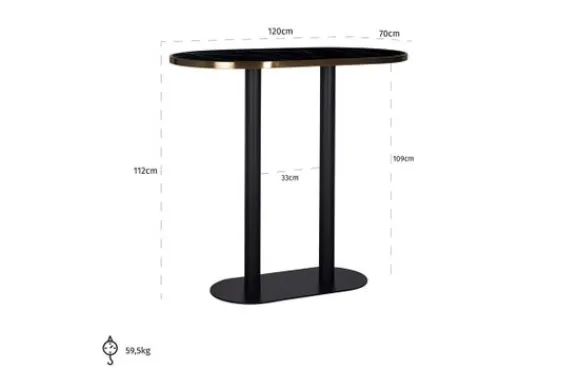 Bartafel Zenza 210914 van het merk Richmond Interiors heeft een luxueuze uitstraling. De bartafel is gemaakt van metaal en heeft een ovaal blad met een marmeren uitstraling. Deze chique bartafel is een echte eyecatcher in jouw interieur.