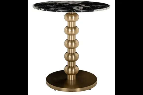 De opvallende poot is een artistiek element op zich, met een reeks van bolvormige accenten in een warme messing afwerking. Deze unieke combinatie van materialen en vormen maakt bistrotafel Witlox een ware blikvanger, ideaal als compacte eettafel, koffietafel of decoratief meubelstuk