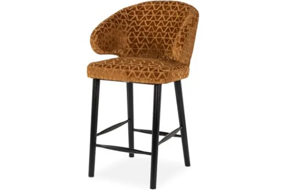 Barkruk Indigo 212797 Gold Triangle van het merk Richmond Interiors is gestoffeerd met Triangle 2013 old gold. Deze stof is een zachte stof en is voorzien van een driehoek patroon, dit zorgt ervoor dat de barkruk een speels uiterlijk krijgt. De barkruk is voorzien van een voetensteun, dit zorgt ervoor dat je tijdens het zitten je voeten hierop kunt laten rusten en dat je comfortabel kunt zitten.
