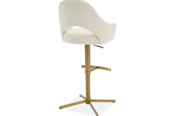 Barkruk Arzano van het merk Opulenza is verkrijgbaar in alle kleuren en materiaalsoorten als rundleder, stof en velvet. Deze barkruk straalt een hedendaagse elegantie uit dankzij zijn ronde lijnen, subtiele opening in de rugleuning en solide metalen onderstel. Het silhouet is zacht en uitnodigend, maar het strakke design van het onderstel voegt een modern industrieel accent toe.