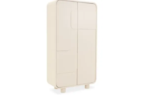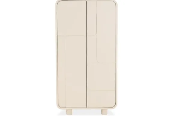 De zachte beige kleur maakt deze kast veelzijdig inzetbaar. Hij past perfect in een modern interieur met organische vormen, brengt een warme touch in een Scandinavische stijl en vormt een elegant accent in een retro-modern interieur.