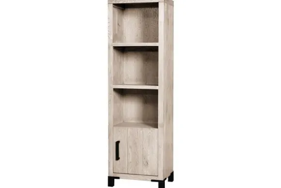 Boekenkast Odile van het merk van Dijk Furniture is verkrijgbaar in verschillende kleuren. Het meubel is gemaakt van massief eiken, waardoor het een robuuste kast is die lang mee zal gaan! De handvaten en poten zijn gemaakt van metaal, dit geeft de kast een moderne uitstraling. De kast heeft drie planken en één deur, genoek opberg- en displayruimte dus!