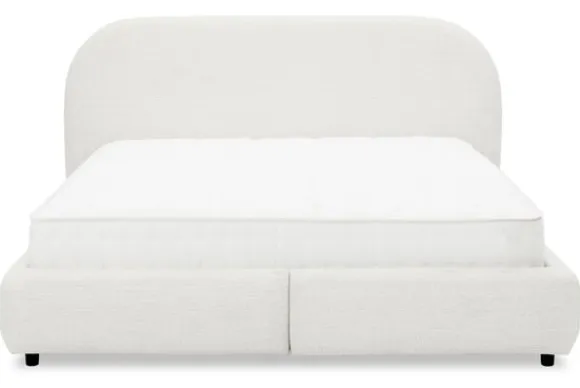 De boxspring kan uitgevoerd worden in diverse materialen en kleuren. De stof op de foto is een lichte, zachte bekleding maar er zijn meerdere opties beschikbaar. Zo kun je het bed precies samenstellen in de kleur en structuur die jouw voorkeur heeft.