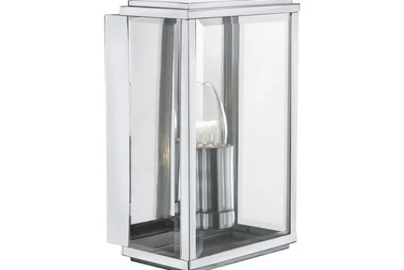 Buitenlamp Box 8204SS van het merk Searchlight is gemaakt van roestvrijstaal. In deze buitenlamp past een lamp met een E27 fitting en van maximaal 60 Watt. De zilverkleurige behuizing heeft een hoogte van 25 cm en een breedte van 16 cm.