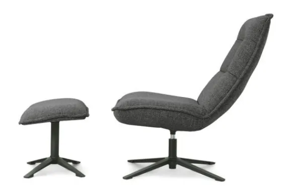 Draaifauteuil Marcus antraciet baquer 95591 met hocker van het merk Eleonora is beschikbaar in verschillende kleuren. Deze stoel is bekleed met een polyester stof die je kunt schoonmaken met een droge doek. De Marcus is door de zwart metalen stervoet 360 graden draaibaar. In de rugleuning van de stoel vind je een blokstiksel. Deze fauteuil wordt geleverd inclusief hocker. De hocker heeft de volgende afmetingen: H40 x B54 x D41 cm.