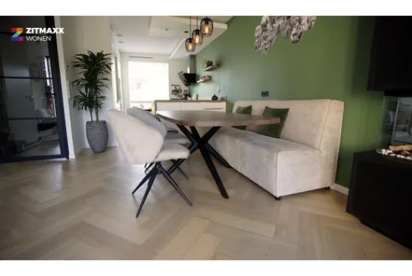 Deze eetbank heeft een robuuste uitstraling en oogt tegelijkertijd stoer door de ribtof die op de (afgebeelde) eetbank zit. De bank heeft een stevige, hoge rugleuning die zorgt voor goede ondersteuning. De zitting is zacht en meeverend voor een comfortabele zit.