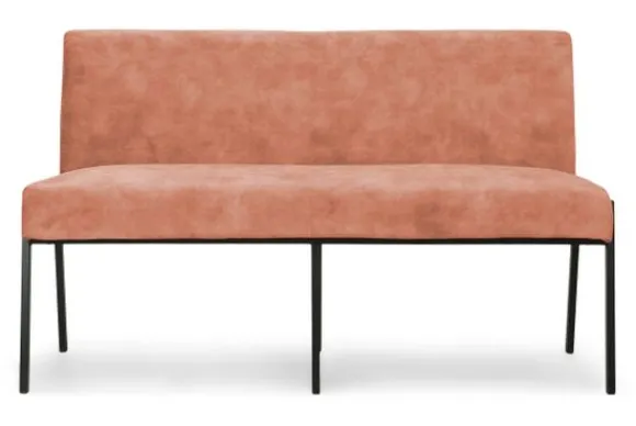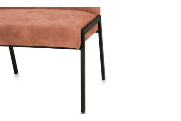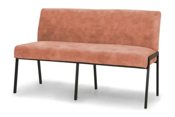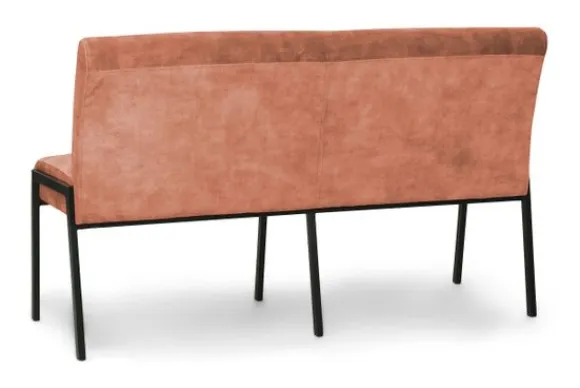 Deze eetkamerbank komt met een gladde rugleuning en met metalen rechthoekige poten afgewerkt met kunststof dopjes.