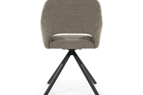Eetkamerstoel Fabio bruin 95835 van het merk Eleonora is beschikbaar in verschillende kleuren. Deze stoel is bekleed met een grove stof die je kunt schoonmaken met een droge doek. Deze stoel staat op een zwart metalen spinpoot, waardoor deze 360 graden draaibaar is. De rugleuning loopt vloeiend over tot armleuningen en heeft een opening onderin.