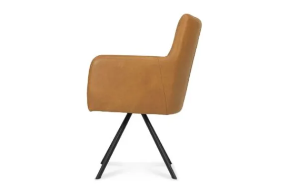 Eetkamerstoel Fredo van het merk Titan Design is beschikbaar in alle kleuren en in verschillende materiaalsoorten zoals stof, velvet en rundleder. De Fredo stoel is beschikbaar in diverse uitvoeringen. Deze Fredo is voorzien van armleuningen en zwart metalen draaivoet, waardoor deze 360 graden draaibaar is.
