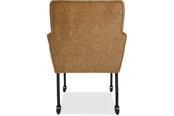 Deze eetkamerstoel wordt standaard geleverd met zwarte rechte poten met wielen en een geknepen naad. Er kan gekozen worden voor andere poten of een dichte naad onder “Kies je extra’s”.