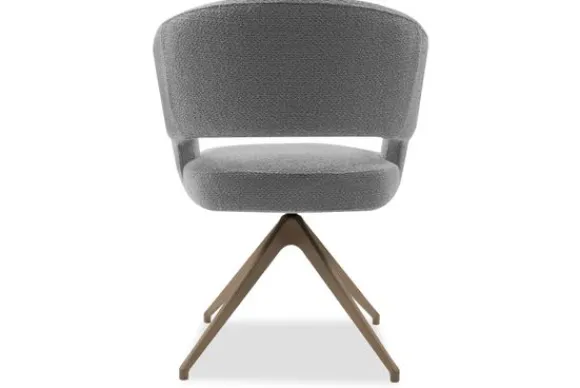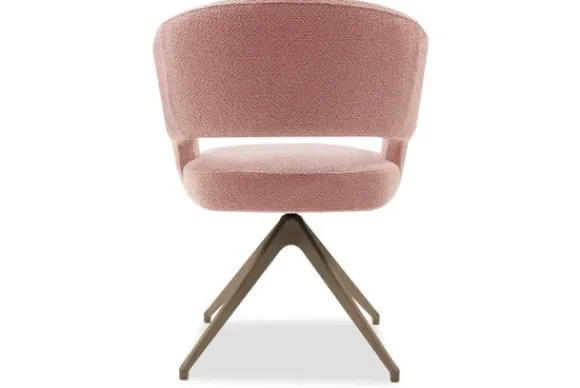 Mirjam is verkrijgbaar met vaste of draaibare metalen poten in meerdere kleuren. De uitvoering op de afbeelding kan worden uitgerust met een terugdraaisysteem. Dit systeem laat de stoel na het draaien automatisch terugkeren naar de oorspronkelijke positie.