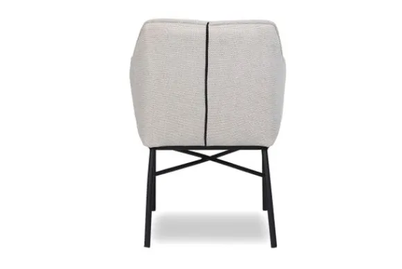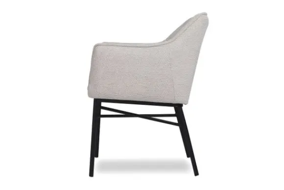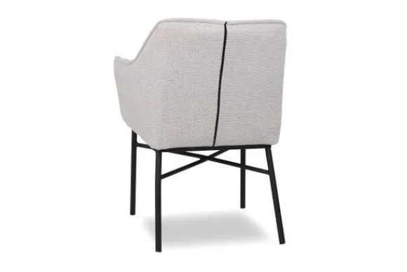 Eetkamerstoel Nadine van het merk Donc is verkrijgbaar in alle kleuren en verschillende materialen zoals stof, velvet en rundleder. Deze stoel heeft in de zitting en in de rugleuning sierlijke stiksels, is voorzien van armleuningen en van zwart metalen poten. Je hebt bij deze eetkamerstoel de keuze uit parketwieltjes en skatewieltjes.