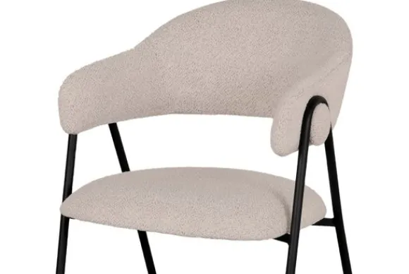 Eetkamerstoel Lowen Naturel IH-50.083 van LABEL51, uitgevoerd in de stof Alpine 01 Naturel bouclé, is een prachtige en elegante stoel gemaakt van de mooiste materialen. Het frame, die de verbinding vormt tussen de rugleuning en zitting, maakt deze stoel extra bijzonder. Deze stoel bestaat uit een aparte zitting en ronde rugleuning die vanuit de rug doorloopt in armleuningen. Aan beide zijden van de rugleuning bevindt zich een speelse ‘knoop’. Het frame, uitgevoerd in zwart metaal, die de verbinding vormt tussen zitting en rugleuning, is om deze ‘knoop’ heen gedraaid. Deze gave toevoeging zorgt ervoor dat Lowen een uniek uiterlijk heeft en een super stabiele en comfortabele zit.