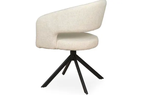 Eetkamerstoel Ekoda van het merk SitSmart is verkrijgbaar in verschillende kleuren. De eetkamerstoel is voorzien van een ronde rugleuning die geleidelijk overloopt in armleuningen. Onderaan de rugleuning zit een opening, dit zorgt voor een ruimtelijke uitstraling. De eetkamerstoel heeft een zwart metalen spinpoot met een 360 graden draaisysteem en een auto return. Bij het terugdraaisysteem is de stoel draaibaar en zal daarna uit zichzelf weer terugdraaien naar het midden, hierdoor heb je de vrijheid om jezelf in iedere gewenste richting te draaien.