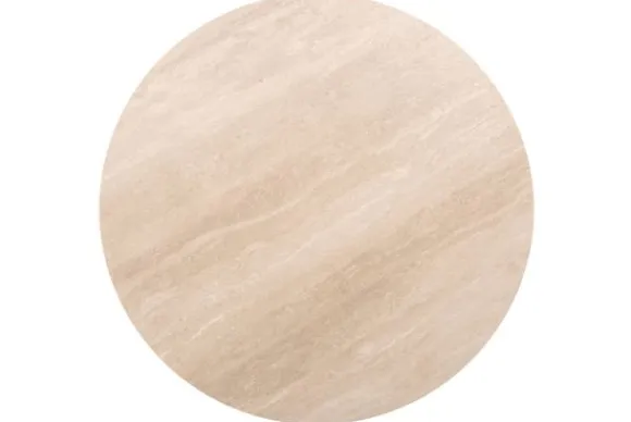 De tafel is gemaakt van keramiek met travertinlook. Omdat het natuursteen is, heeft elke tafel een uniek patroon en eigen kleuraccenten.