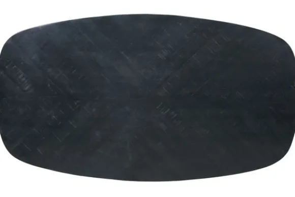 Het tafelblad is gemaakt van mangohout in de kleur zwart met een verfijnd visgraat motief, dat in een kruispatroon is gelegd. De houtsoort heeft vele kleurschakeringen en ongelijkheden in het oppervlak, wat een natuurlijke en unieke look geeft.