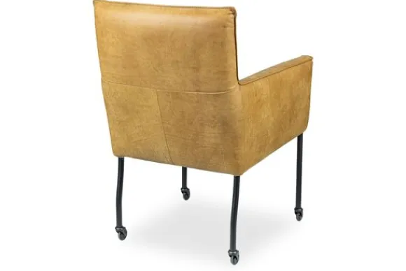 Deze stoel wordt standaard geleverd met zwarte rechte poten met wieltjes en een geknepen naad. Er kan gekozen worden voor andere poten of een dichte naad onder “Stel jouw eetkamerstoel samen”. Ook hier kan gekozen worden om de stoel 5 cm extra zitbreedte te geven.