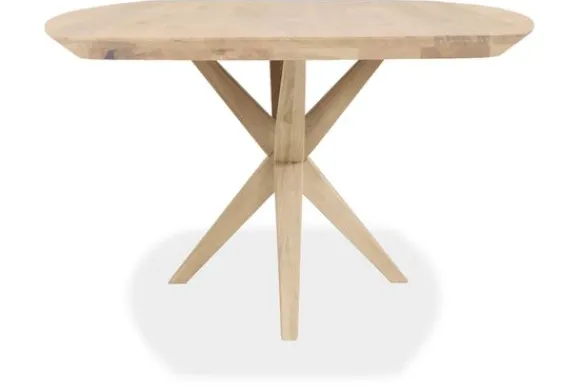 Eettafel Bodari van het merk De Houtmaatschappij is verkrijgbaar in verschillende afmetingen en kleuren. Het tafelblad heeft een deens ovale vorm en loopt taps af langs de zijkanten, waardoor deze tafel geen scherpe hoeken heeft en is gemaakt van massief eikenhout. Eikenhout leeft en geeft hierdoor karakter aan jouw meubelstuk. Daarnaast is elk stuk uniek door de nerven en noesten.