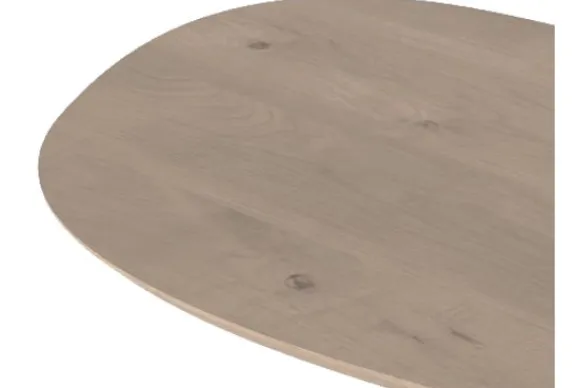 Eettafel Giro van het merk De Houtmaatschappij is een blikvanger die elegantie en vakmanschap combineert. Het kiezelvormige blad zorgt voor een speelse vorm in de eetruimte. Dankzij de luchtige spinpoot heeft de tafel een open en modern karakter.