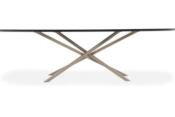Het gekruiste metalen onderstel geeft de tafel een grafisch accent en zorgt voor stabiliteit. Ideaal binnen een Scandinavisch interieur waar eenvoud en functionaliteit samenkomen. Er zijn ook andere pootmodellen beschikbaar voor een persoonlijke touch.