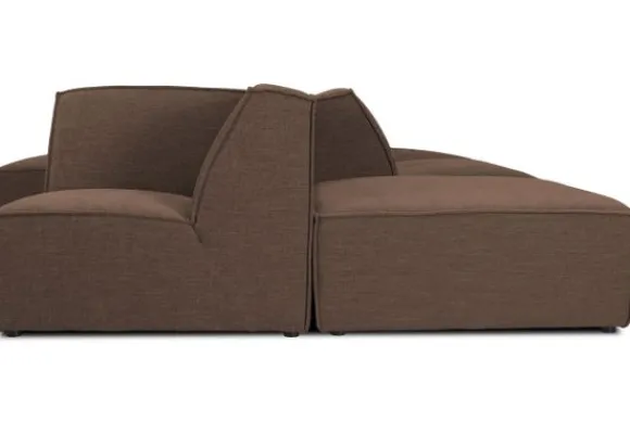 Zitbank Loki van het merk Dakota Industrial oogt robuust door de vaste kussens en de zitting die doorloopt tot net boven de grond. De bank heeft diepe zittingen en is afgewerkt met geknepen naden.