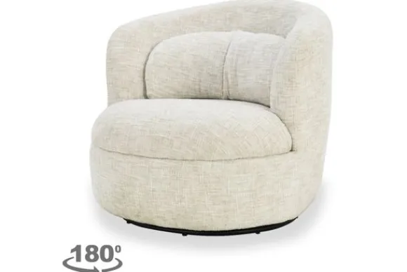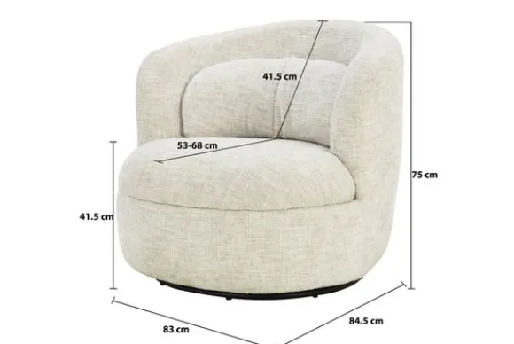 Fauteuil Britt van het merk Livingfurn is een draaibare blikvanger die zachtheid en elegantie subtiel combineert. De lichte creamkleurige stof voelt aan als een omhelzing van rust en verfijning, met een speels geweven structuur die het ontwerp extra diepte geeft. Dankzij de afgeronde vormen en diepe zitting straalt Britt een uitnodigende sereniteit uit, perfect voor een Japandi interieur waar eenvoud en luxe in harmonie samenkomen.