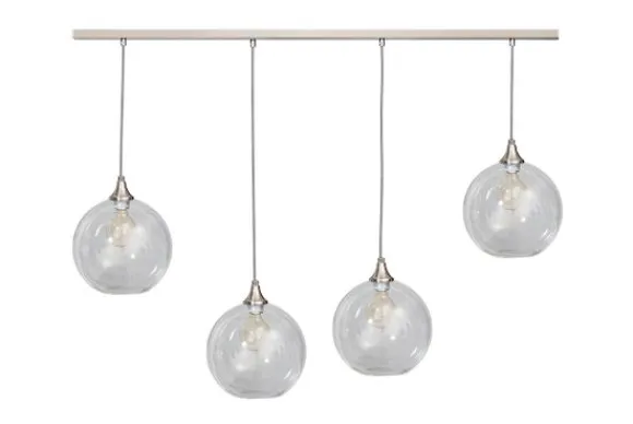 Hanglamp Calvello van het merk ETH is niet alleen mooi wanneer hij brand. Overdag is het ook zeker een plaatje om naar te kijken. Deze lamp heeft vier glazen bollen en wordt geleverd inclusief beugels. Doormiddel van deze beugel kan je de lamp richten naar verschillende plekken. De lamp is verstelbaar in hoogte, de maximale hoogte is 120 cm. De Calvello lampencollectie bestaat uit een hang- en plafondlamp. De lamp wordt exclusief lichtbron geleverd. Doordat de lichtbron niet meegeleverd is, kun je zelf bepalen hoeveel licht je wilt en in welke kleur. Op de afbeelding is gebruik gemaakt van een kooldraad led lamp. Deze lichtbron komt mooi tot zijn recht in deze lamp, omdat je door de lamp heen kunt kijken.