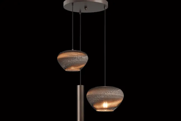 Hanglamp Cartone van het merk Masterlight brengt warmte en sfeer in je interieur. De twee kartonnen kappen met gelaagde structuur verspreiden een zacht, speels licht, terwijl het slanke metalen armatuur een modern accent toevoegt. Ideaal voor boven een kleine eettafel, zithoek of als stijlvolle verlichting in de hal.